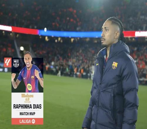西甲第14轮,巴塞罗那主场3-1击败阿拉维斯,此役送出助攻的拉菲尼亚当选西甲官方全场最佳球员。